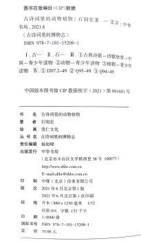 图书简介 | | 全书不仅有通俗易懂的古诗词赏析,还趣味讲解诗词中提到的动物的生活习性、植物的生长习性,而且引经据典,生动道出动植物背后的传统文化典故。内容包括:采薇:薇是一种什么样的植物?;自牧归荑,洵美且异:古人为什么把茅草当礼物?等。 |