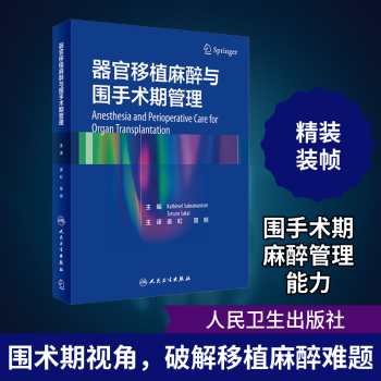图书简介 | | 本书首先讲述的是器官移植伦理、脏器分布网、免疫学、感染控制等问题。此外还详细介绍了包括心脏死亡器官捐献、活体供体和多器官脑死亡供体在内的各种供体的管理。该书还详细介绍了胸部器官(心肺)移植、腹部器官(肾、胰、肝、小肠和多脏器)移植的围术期管理以及复合组织移植,每个部分包含移植前受者管理、移植手术技术总结、麻醉技术要点和移植术后的康复管理。 |