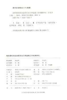 图书简介 | | 本书内容包括:高校“三不”机制建设路径研究;国家监察体制改革背景下高校纪检监察机构履职困境及对策调查研究;高校政治重庆评价的指标体系研究————以教育部直属高校为例等。 |