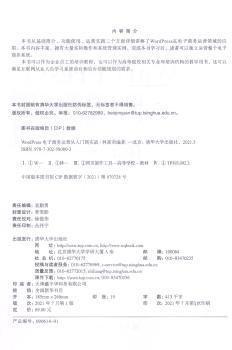 图书简介 | | 本书从基础简介、功能使用、运营实践三个方面详细讲解了WordPress在电子商务运营领域的应用。本书内容丰富,拥有大量实际操作和系统管理实例。完成本书学习后,读者可以独立运营整个电子商务系统。 |