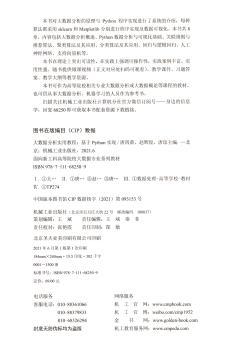 图书简介 | | 本书共分为8章,内容包括大数据与云计算技术概述、Python数据分析基础、关联规则挖掘和协同过滤算法、聚类、分类、线性回归与分类、人工神经网络、支持向量机等内容。 |