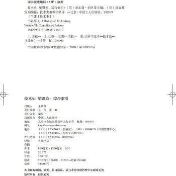 图书简介 | 本书共八卷,本卷为第八卷:综合索引。本卷包含了前七卷全目、人名索引、地名索引以及主题索引。将这些索引整合起来,即为现代技术的演变提供一条连贯的时间线索。编制多种索引,使《技术史》更具实用性,可以让读者按图索骥,根据信息的类型以及检索的目的,采用多种方式进行检索。 |
