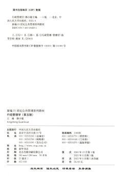 图书简介 | | 全书分五篇系统阐述了行政管理学的基本理论和方法:第1篇阐释行政管理学的基本概念、发展历程及研究方法;第2篇论述行政管理活动的主体;第3篇分析行政领导、行政决策等行政运行过程中的管理活动;第4篇研究财务行政和机关行政;第5篇重点论述行政绩效、行政责任等行政管理活动的重要内容。 |