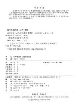 图书简介 | | 本书介绍了以学生为中心教育理念的提出和发展情况,阐述了我国以学生为中心职业教育研究成果,研究了我国职业院校推进以学生为中心教育改革的基本策略,同时对国家推进以学生为中心职业教育改革提出了政策建议。作为课题的研究和实践成果,本书首先介绍了以学习者为中心教育的提出与发展、理论意义和现实意义,阐述了我国以学生为中心职业教育研究成果;然后论述了职业教育人才培养模式的基本构成和基本特征,以学习者为中心人才培养模式的基本诉求,提出了职业院校推进以学习者为中心教育改革策略;最后对国家推进职业院校以学习者为中心教育改革政策建议。 |