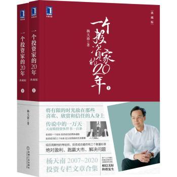 图书简介 | | 本书为杨天南从2008年开始至2020年的投资专栏文章汇总,自2008年开始,每月写作一篇,至今已13年。每篇文后均附有当月投资组合,期间数次穿越牛熊,经历了市场的重大洗礼。第3版新增了2017年至今的30多篇文章。全书分为上下册,上册收录2008-2014年文章,下册收录2014-2020年文章。 |