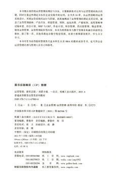 图书简介 | | 全书共16章,从运营战略到运营系统设计,再到运营系统的运行与控制,系统地阐述了运营管理的理论及其应用,涵盖了运营管理战略、产品开发、质量管理、选址决策、产能规划、流程策略和设施布置、综合计划、MRP与ERP、作业计划、库存管理、供应链管理、精益管理、服务运营管理、运营管理前沿等内容。 |
