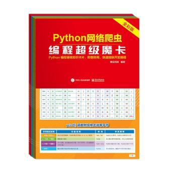 图书简介 | | 我们从编程实际开发的角度出发,融汇了多位开发高手的经验和总结设计了这套《Python网络爬虫编程魔卡》,将学习Python数据分析时需要背记的内容系统整理出来,让学习者在学习过程中能随时查找使用。 |