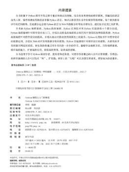图书简介 | | 本书由Python编程基础、Python高级编程、Python应用技术和Python实战演练4个部分组成。Python编程基础针对程序设计的入门,介绍从过程化的编程要点到代码中使用的各种数据类型;Python高级编程针对程序设计的提高,介绍从面向对象的使用到算法上的提升;Python应用技术针对程序设计的场景运用,介绍从Web的开发到数据分析的思路;Python实战演练针对程序设计的逻辑,从游戏的开发到基本网站的建设。 |