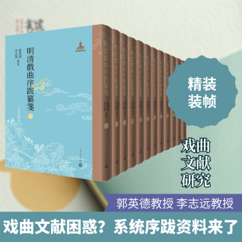 图书简介 | | 本书尽可能准确地查核版本出处,选择较好的版本作为底本,并加校勘、标点,对与戏曲文献及其序跋撰写、出版、流传相关的时间、人物、事件等相关事项,进行细致的笺证,深入细致地考察作者的生平事迹,并附注相关传记文献名目。本书给学界提供了丰富翔实的戏曲序跋文献资料,有助于进一步开拓中国古代戏曲文献、戏曲史与戏曲理论的研究。 |