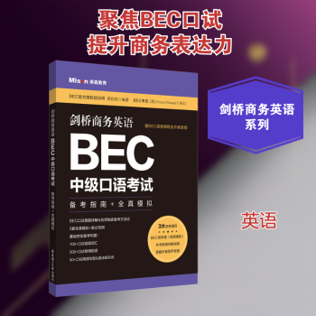 图书简介 | | 在剑桥商务英语BEC的备考中,口语一向是中国学生的薄弱环节。BEC口试需要学生具备扎实的英语基础、一定的商科和管理学知识、必备的商务英语相关表达,而大部分考生这方面基本功是不扎实的。因此,本套BEC备考丛书立足于夯实考生口语基础,从BEC口试的四项评分标准出发,提升BEC考生的语法与词汇、话语组织、语音、互动交际等方面的能力。同时,本书还附赠了外教录音,让考生能够把握纯正发音,进一步提升自己的商务英语表达能力,顺利通过BEC口语考试。 |
