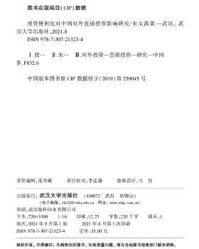 图书简介 | | 本书共七章,内容包括:导论;文献综述;投资便利化、企业生产率与OFDI区位选择的机理分析;东道国投资便利化测度及分析;东道国投资便利化、企业生产率对区位选择的实证(一);东道国投资便利化、企业生产率对区位选择的实证(二);结论与政策建议。 |
