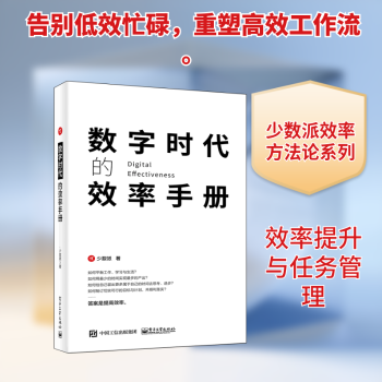 图书简介 | | 本书是一本教你提升效率的图书。少数派根据提升效率的几个很重要的方面,精心挑选了平台内的优质文章,从效率的本质、制订计划、时间管理、任务管理、高效写作等方面入手,力求帮助读者弄清楚效率的方方面面,充分挖掘自身的潜力,全面提升读者在工作、学习、生活中的效率。作为互联网时代的图书,全书特别搭建了读者交流群,不仅帮助读者交流学习,还会安排作者不定期答疑解惑,分享自己的近期新研究成果,努力成为读者身边的信息管理知识库。 |