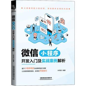 图书简介 | | 本书从微信小程序介绍讲起,分为11章,包含8个案例章节,其中第一个案例为全案讲解,侧重小程序配置、框架、页面渲染、网络请求、相关组件使用的基础知识点;后面几个章节,分别针对不同行业或类型的案例,就其中具有代表性页面或功能、高级组件开发和核心功能点,做重点分析讲解。涵盖的主要内容有微信小程序简介;图片工具小程序案例解析;图片社区小程序案例解析;信息查询小程序案例解析;积分商城小程序案例解析;企业门户小程序案例解析;知识付费小程序案例解析;垃圾分类小程序案例解析;同城优惠小程序案例解析;小程序直播开发讲解;小程序未来发展趋势、如何通过小程序广告赚钱、小程序提交审核有哪些注意事项等问题答疑。 |