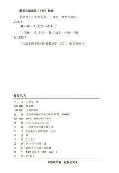 图书简介 | | 本书是作者用诗词书写生活、讴歌和赞美生活的一部文集,总共分5部分内容。第一部分内容是“悠悠军歌唱不尽”,怀念军旅生活,与战友相互唱和;第二单元为“绵绵心语家国情”,歌颂作者对时代和生活感悟;第三单元为“楚楚依人故乡月”,描写游子怀乡,对家乡寄予了无限深情;第四单元为“滚滚红尘任我行”,是对自己游历的记录,讴歌大好河山;第五单元是“疫情难敌诗兴长”。作者生活态度积极向上,坚定昂扬,用带有韵律而优美的诗词,书写着自己健康广博而美好的人生。 |