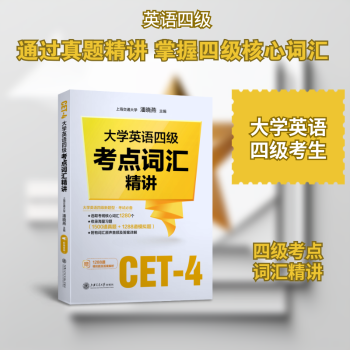 图书简介 | | 本书根据最新《全国大学英语四、六级考试大纲》的要求,选取了1280个核心词汇,并包含四级考试真题1500道,模拟题1288道。本书以字母划分单元,每个单元包括核心词条、四级真题及答案解析,核心词条将考试大纲和指导性教材中出现的核心单词列出,标注词性与中文释义,并通过“构词”“例句” “搭配”“派生”“相关归类”“考点”“真题”“模拟题”等模块帮助读者全面掌握词汇。 |