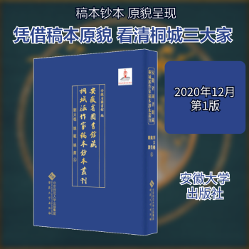 图书简介 | | 本书收录安徽省图书馆藏三位作家的稿本钞本,分别是刘大櫆《海峰八家圈点评》一卷,70拍,清钞本,是刘大櫆为唐宋八家古文所作圈点的起讫及评语。姚范《援鹑堂笔记补遗》一卷,42拍,清光绪十五年(1889年)姚永概钞本,是姚范《南史》眉批札记的过录本。姚鼐《惜抱轩题跋》一卷,48拍,民国二十二年(1933年)姚翁望钞本,所辑多为姚鼐題于碑帖上的论书之作和少数几篇碑帖释文及诗文的题跋。姚鼐《姚惜翁阁贴跋尾》一卷,14拍,清姚鼐稿本,收录了姚鼐阅览明初泉州刻《淳化阁帖》时所作考证性题跋十九条。姚鼐《惜抱先生尺牍补遗》一卷,11拍,清钞本,收《与吴殿麟》书信九篇。此次出版展现了刘大櫆、姚范、姚鼐多部作品稿本钞本的原貌,为学界深度研究三位作家的生平、学问、思想等提供不可多得的宝贵资料。 |