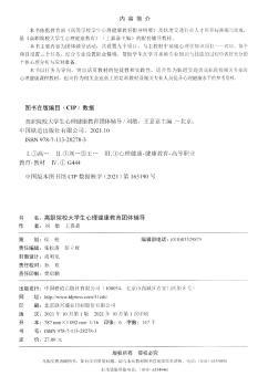 图书简介 | | 本教材主要内容为团体辅导活动,设置九个项目,与主教材中基础心理学知识项目一一对应。每个项目设三个任务,结合专业设置职业情境,学生在学习基础专业知识与技能的过程中,做好充分的个体心理分析与应对准备。本书以任务为导向,突出活页教材的便捷性和实践性。 |