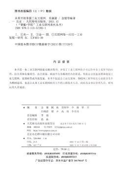 图书简介 | | 本书是一本工业互联网技能实操训练书。本书从国内工业互联网主流平台及其特点、工业互联网网络、工业互联网平台、工业互联网安全、平台应用案例5个方面介绍了工业互联网。本书介绍了工业互联网在企业运作中各主要环节的应用,结合具体实操项目,由点到面,阐述平台各模块的内在联系,可帮助企业快速部署和使用工业互联网,实现转型或升级发展。 |