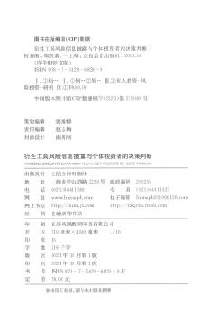 图书简介 | | 本书以心理学中的信息加工理论、认知拟合理论和风险感知理论为基础,采用实验研究的方法,检验了公司对衍生工具的使用及相关的风险信息披露方式对个体投资者的风险感知和投资判断的影响及其影响机理,探究个体投资者风险信息加工和判断中的认知过程。 |