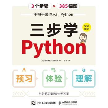 图书简介 | | 本书是Python编程的入门书。面向零基础读者,以类似课堂学习的方式,通过预习、体验、理解三个步骤讲解Python的基础知识。在“预习”环节简单汇总该节内容,在“体验”环节实际创建Python程序并运行,在“理解”环节结合插图讲解该节的重点和程序内容。章末设置有练习题,可以帮助读者检验学习效果。本书从运行环境的安装开始讲起,接着介绍命令和文件的执行方法、变量和数据类型、条件分支、循环处理、基本库等基础知识,最后介绍用户定义函数、类等实践性的内容。 |