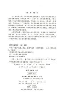 图书简介 | | 本书在构建乡村振兴理论框架的基础上,研究了乡村产业兴旺、生态宜居、智慧治理、农民增收、生产要素流动、农业支持保护和脱贫攻坚成效巩固所面临的深层次约束和问题,基于学术研究和实地调研提出乡村振兴的实施路径、政策建议和体制保障,对实施乡村振兴战略的决策制定、政策实施和政府工作具有重大指导意义。 |
