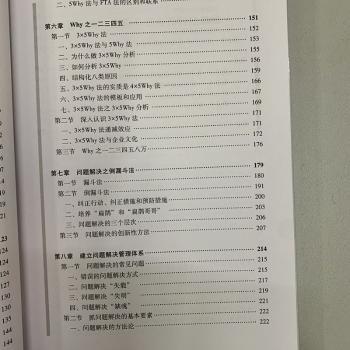 图书简介 | | 本书总结了作者二十余年在工作中实践过、学习过、思考过的关于根因分析与问题解决的思路、方法、工具、流程、文化、沟通协作和经验教训等,并分享了大量案例以便读者切实理解。本书共八章:第一章介绍根因分析与批判性思维;第二章说明What型和Why型根因分析;第三章阐述根因分析之文理科方法;第四章分析根因分析之因果关系;第五章讨论刨根问底之5Why法;第六章探讨Why之一二三四五;第七章研究问题解决之倒漏斗法;第八章论述建立问题解决管理体系;之后,还给出了附录和后记。 |