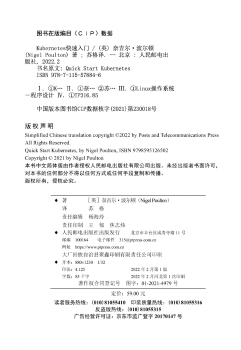 图书简介 | | 本书是Kubernetes的快速入门指南,共分为10章,涵盖Kubernetes的基础知识,并附带配套案例,介绍Kubernetes是什么、为什么需要Kubernetes,以及Kubernetes的发展方向。阅读本书,读者除了能学到Kubernetes集群的架构,还能学会如何建立一个集群,将一个应用容器化,然后部署并破坏它,利用Kubernetes修复它,对它进行扩缩容,并执行应用的更新。本书还介绍云原生、微服务等术语的含义。 |