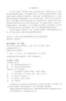 图书简介 | | 本书介绍了获得广泛应用的三类非主动发光显示技术:液晶显示技术、电子纸显示技术和投影显示技术。对于液晶显示技术,详细介绍了液晶的基本特性,各种液晶显示模式,液晶显示产品的结构、功能与制造,高品质液晶显示技术,以及液晶显示在高精细方向的发展趋势。对于电子纸显示技术,详细介绍了电子纸显示的特点、应用与挑战,并分粒子移动型电子纸、液晶型电子纸、电色型电子纸、仿生光学型电子纸四大类介绍了各种电子纸显示技术。对于投影显示技术,详细介绍了投影显示的特点、应用与挑战,并分LCD投影、DLP投影、LCOS投影三大类介绍了各自的显示屏技术与光学引擎技术,最后介绍了激光超短焦投影显示技术。 |