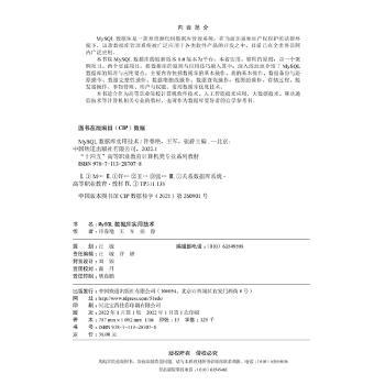 图书简介 | | 本书以MySQL数据库的较新版本8.0版本为平台,以一个案例项目、两个实践项目,将数据库的原理与应用技巧融入其中,介绍了MySQL数据库的原理与应用要点。主要内容包括数据库的基本操作、表的基本操作、数据备份与还原操作、数据完整性操作、数据增删改操作、数据查询操作、视图的操作、存储过程、触发器操作、事物管理、用户与权限、常用数据库优化技术。 |
