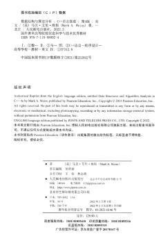 图书简介 | | 本书是数据结构和算法分析的经典教材,书中使用主流的程序设计语言C作为具体的实现语言。书中内容包括表、栈、队列、树、散列表、优先队列、排序、不相交集算法、图论算法、算法分析、算法设计、摊还分析、查找树算法、k-d树和配对堆等。本书把算法分析与c程序的开发有机地结合起来,深入分析每种算法,内容全面、缜密严格,并细致讲解精心构造程序的方法。 |