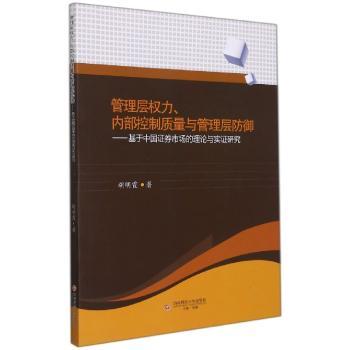 图书简介 | | 本书分为八章,主要内容包括:绪论;理论基础及文献综述;产权制度、管理层权力与内部控制质量;企业生命周期、管理层权力与内部控制质量;管理层权力、内部控制质量与管理防御之高管腐败;管理层权力、内部控制质量与管理层防御之在职消费和过度隐性私有收益;管理层权力、内部控制质量与管理层防御之盈余管理;研究结论与展望。 |