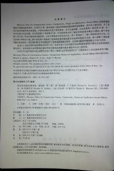 图书简介 | | 本书是微波滤波器设计领域的权威著作,本书为基础篇,前两章介绍了通信系统的基本概念与理论;第3章和第4章介绍了常用的滤波器函数特性,以及计算机综合和优化方法;第5章描述了二端口网络的表示方法,以及多端口网络的分析;第6章至第8章叙述了各类滤波器传输函数及其电路网络综合方法,深入讲解了滤波器的耦合矩阵理论;第9章和第10章详细说明了各种滤波器耦合矩阵,以及相关拓扑结构的综合方法与应用。 |