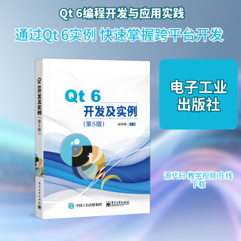图书简介 | | 全书分为7个部分。第1部分为Qt基础,在上一版的基础上基于Qt 6.0的全新类模块和接口,重新实现了所有基础实例的功能。第2部分为Qt 6综合实例,设计了电子商城系统、简单字处理软件、微信客户端程序这三大实用案例。第3部分为Qt扩展应用OpenCV,介绍OpenCV的配置及典型图片处理实例。第4部分为QML和Qt Quick及其应用,基于Qt 6.0支持的Qt Quick Controls 2.5新库实现了诸多典型应用实例。第5部分是Qt Quick 3D开发基础,先从基础的场景、相机、视图、光源等概念入手,通过程序实例介绍Qt 6 3D开发的基础知识,然后通过一个综合的“益智积木”学习软件来演示Qt 6在3D开发上的强大功能。第6部分是Qt 6跨平台开发技术,介绍了Qt 6在Visual Studio、Android、Python及Linux(Ubuntu)等多种主流平台上的环境配置和程序开发。第7部分为附录,介绍了C++相关知识和Qt 6的简单调试。 |