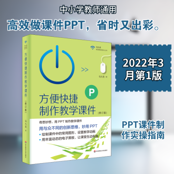 图书简介 | | 本书是特级教师马九克三十多年教学工作经验分享!2、本书是用PPT制作各种教学课件,本书中的PPT制作方法,完成的课件,光盘中所含的视频,资料包,完成的课件,都是为教师教学量身定做。3、用信息技术进行课堂教学的改变,这不但要观念创新,更要用技术来实现。本书手把手教实际操作方法,不谈理论,老师学了就能用。妙用PPT,可以让你在一分钟内画出任意复杂形状的试管,甚至比较复杂的电路图。充分利用PPT软件,能制作出了教学中几乎所有的动画课件。学习创新思维,熟练运用软件,让一线教师的课堂更精彩! |
