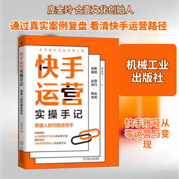 图书简介 | | 本书虽浅显易懂却触及运营深处,结合诸多真实案例,从多个角度对快手的运营之路进行了详尽的剖析。在图表与实例的配合下,深入探讨了普通人或团队应如何依靠快手的优势实现自己的变现之路,为读者提供了一份即学即用的快手运营实操手记。无论是尚在门外的“小白”,身处行业的“过来人”,还是经验老到的快手达人,都能在本书中找到可供借鉴方法。 |