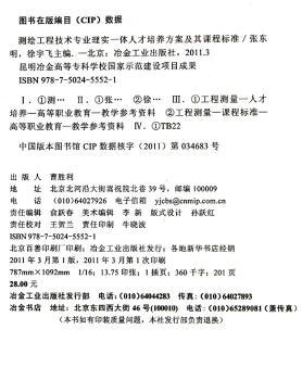 图书简介 | | 本书分为测绘工程技术专业理实一体人才培养方案、测绘工程技术专业课程标准两编,内容包括:测绘工程技术专业人才培养状况、测绘工程技术专业人才需求现状、测绘工程技术专业人才培养总图、测绘工程技术专业人才培养创新、“地理信息系统技术应用”课程标准、“地形测量”课程标准、“数字化测图”课程标准等。 |