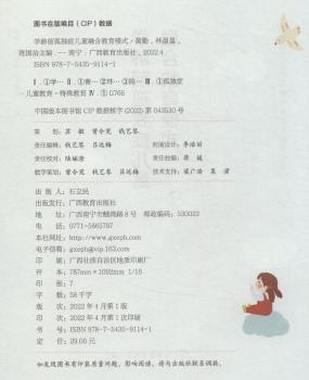 图书简介 | | 本书围绕学龄前孤独症儿童的融合教育模式,结合专家团队多年的融合教育实践经验,从融合教育模式、融合教育评估、儿童个别化融合教育计划等方面进行介绍,运用理论和实践相结合的方式展示如何开展学龄前孤独症儿童的融合教育,以图文并茂的形式展现教学内容,并开发配套融合教育数字课程,提供更全面的教育服务。 |