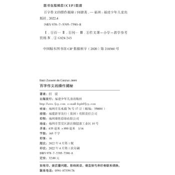 图书简介 | | 本书是名师教你写作文系列的增补品种。作者结合自身丰富的教学实践经验总结出百字作文教与学的操作要领。层层递进,环环相扣,将作者的百字经验与心得通过文字活灵活现地展现出来。本书具有以下显著特点:内容翔实,将作者百字作文教学实践全部涵盖;观点新颖,展现作者独有的教学特色;案例丰富,每个小节都有一至两个学生的写作案例,可供读者参考学习。本书不仅可以让学生掌握百字作文的秘诀,切实提高学生的作文能力,对于教师、家长进行写作指导也有重要意义。 |