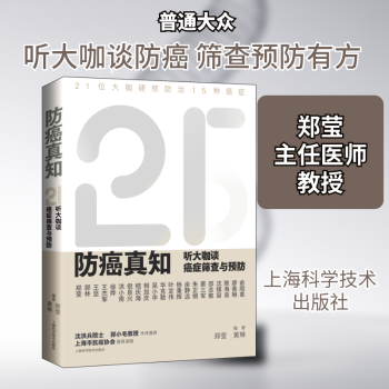 图书简介 | | 本书采用专家访谈形式,通过与21位知名肿瘤防治名医名家深入探讨,回顾几十年的肿瘤防治发展历程中我们取得的宝贵经验,精心提炼出他们认为最具价值的防癌真知,具有较强的可读性、实用性,值得我们仔细阅读体会,并转化为科学的防癌理念与生活方式。为便于读者查阅,本书还精选了由上海市抗癌协会和复旦大学附属肿瘤医院最新发布的《居民常见恶性肿瘤筛查和预防推荐》中的相关建议,所有文字均经专家审核,值得作为家庭必备保健指南珍藏。 |
