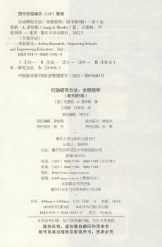 图书简介 | | 本书按照行动研究进行的时间顺序说明行动研究的每个步骤。一开始是明确研究主题、然后回顾相关文献、设计研究、制定行动计划、实施以及分享和反思等环节。本书强调应用,列举了许多简单的讨论和描述之外的实例,如数据收集工具(包括清单、态度调查、访谈提纲和期刊推荐)和研究结果表述(如:采用定量数据分析得到的各类图表,源于定性数据分析的总结表格、调查报告)。 |