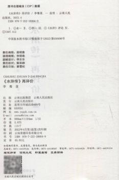 图书简介 | | 本书选题为古典名著评论研究专著,《水浒传》是中国古代四大名著之一,研究者众多,成果斐然。著名作家李骞所著的《<水浒传>再评价》在前人研究的基础上,对书名、作者、成书年代和版本进行了较为详细的考证,全书由“书名、作者、成书年代和版本”“《水浒传》的思想内容”“《水浒传》的组织基础”“《水浒传》的战术”“《水浒传》的”绰号“问题”等章节构成。作者对这部名著的思想内容进行了全新的论述,认为其不是描写农民起义的长篇小说。此外,该书还对《水浒传》的组织基础、《水浒传》的战略战术、《水浒传》的“绰号”等问题作了周密的论证。 |