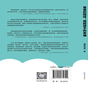 图书简介 | 本书讲述爸爸带娃的故事、方法、感悟,坚持爸爸来养育孩子,鼓励所有爸爸和妈妈一起带娃育儿一个家庭里面,孩子有爸爸的陪伴,加上妈妈的爱和鼓励,能拥有更大的格局和强烈的自信。本书分别从“宝贝,你在发光”“家是甜的”“爸爸,站出来”“抱抱臭小孩”“家,也会有苦”这五个篇章。书中三十多个亲子育儿案例都是真实存在的,有技巧、有方法、更有温度,倡导更多的爸爸参与孩子的养育过程,使我们的家庭生活更加平衡和谐。 |