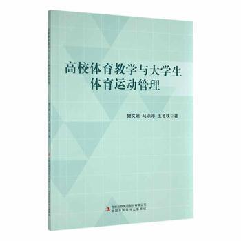 图书简介 | | 本书是一本关于高校体育教学与大学生体育运动管理的著作。书中内容共有六章,从高校体育教学与大学生体育运动管理概述、体育教学管理氛围与信息思维应用创新模式、体育教育信息化思维应用与体育教学质量提升、信息化应用视角下的体育教学方法创新与训练管理、体育信息化教学与新时期体育发展等方面,阐述了新时期高校体育教学的创新思维,以及作者对大学生体育运动管理实践的体会与见解。 |