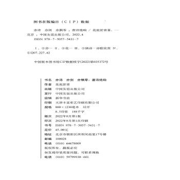 图书简介 | | 本书是一本关于唐代诗人的清明上河图。书中选取40位唐代著名诗人,按照唐朝4时期,每一时期10位诗人的编排方式,从读者耳熟能详亦或明珠蒙尘的唐代经典诗词出发,以真实历史事件和诗人生平经历为线索,将与诗人相关的典故、小趣闻穿插其中,改变读者对唐诗一贯的乏味看法,呈现唐朝诗人的人物精神和生平故事。书中将唐朝文人的诗作与所感、所悟、所行,与朋友的交谈探讨、对世事典故的评说、立意记录紧密结合,还原真实可感的诗人人生,涵盖修身、处世、待人、接物、交友、求学、治家等多方面内容。 |