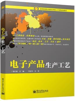 图书简介 | | 本书着重介绍电子产品生产过程中的基本术语、操作方法、操作规程、技术标准与国家标准等相关知识。主要内容有安全生产与文明生产知识,工艺文件与设计文件知识,电子元器件识别与检测,元件、导线成型与加工工艺,电子部件装联工艺,总装与调试工艺,检验与包装工艺等。 |