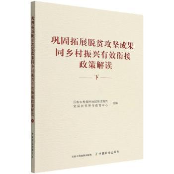 图书简介 | | 本书为巩固拓展脱贫攻坚成果同乡村振兴有效衔接政策解读的下册,共有10条主要内容和6条附件,包含针对脱贫攻坚对应的政策解读,其中包括《关于做好巩固拓展残疾人脱贫攻坚成果有关工作的意见》政策解读和《关于巩固拓展医疗保障脱贫攻坚成果有效衔接乡村振兴战略的实施意见》政策解读等内容。 |
