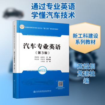 图书简介 | | 本书内容以汽车构造为主,并选编了一些有关新能源汽车技术、智能网联汽车技术以及汽车安全新技术等方面的文章。全书共分20个单元,每个单元均包括课文、词汇、注释、练习和阅读材料几个部分,叙述通俗易懂、图文并茂。为了便于学习,书中对难词、词组及专业词汇作了注释,各单元后配有练习题,书后附有汽车专业常用英文缩写以及汽车主要零部件词汇表。 |