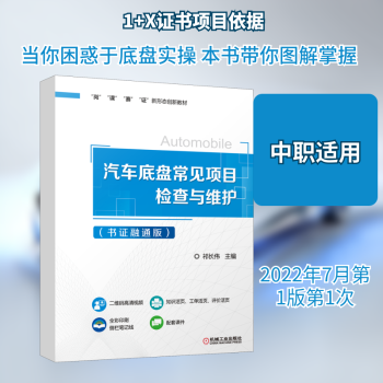 图书简介 | | 本书以高素质技能型人才培养为导向,以1+X证书项目为依据,融合中高职一体化改革发展思路,按任务引领式教学编排课程内容。主要内容包括车轮检查与维护、悬架系统检查与维护、悬架系统部件更换、下摆臂检查与更换、四轮定位检查与调整、电控转向系统检查与维护、动力转向系统部件更换、半轴检查与更换、自动变速器检查与维护、制动油液检查与更换以及盘式制动器检查与维护11个任务。每个任务都采用活页形式,分为“知识活页”、“工单活页”和“评价活页”三种类型。 |