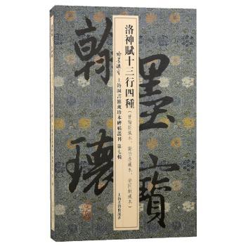 图书简介 | | 本书将上海图书馆藏珍本碑帖《洛神赋十三行》四种合为一册,高清仿真影印出版。《洛神赋十三行》为小楷中之精品,深受世人喜爱,历代翻刻不知凡几,“玉版十三行”是其中的佼佼者,故翻刻本多,且翻刻颇精,导致真伪莫辨。此次精选了上海图书馆藏《洛神赋十三行》善拓三册,共四种,分别为甘翰臣藏清初“未进内府本”“晋字未损本”二种合册,谢伯鼎藏“晋字初损本”,以及翁同穌藏“柳跋洛神十三行”精拓本。此书所据底本精善,图版清晰度高,纸张、印刷均属上乘,逼真再现原帖之面貌。书后附一独立册子,有导读及释文各一。专家导读详细介绍了《洛神赋十三行》的传世版本的复杂情况,说明此本所收四种各自的特殊价值。 |