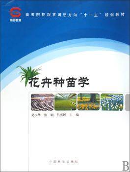 图书简介 | | 本教材由绪论、种苗圃地的规划与建设、花卉种子生产、花卉穴盘苗生产、专业扦插苗生产、花卉分株苗、嫁接苗及压条苗生产、专业组培苗生产、花卉种球生产等内容组成。 |